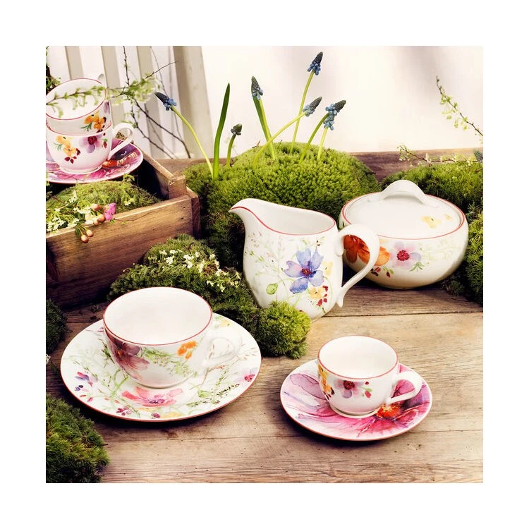 The Mariefleur collection brings a soft, feminine elegance to tabletops with its whimsical shapes and handpainted floral patterns. Inspired by Monet’s own lush garden in Giverny, France, this collection offers eye-catching flowers in vibrant springtime colors. Earn yourself a little more leisure time with dishwasher safe durability and microwave safe convenience. High-quality German-made porcelain provides upscale appeal and lasting durability. Villeroy & Boch has been a premium manufacturer of fine porcelain, glassware, flatware, and more since 1748; This is proudly manufactured in Villeroy & Boch’s Germany factory.
