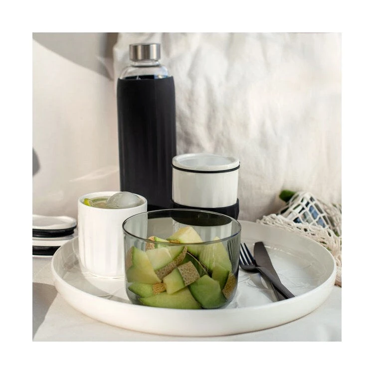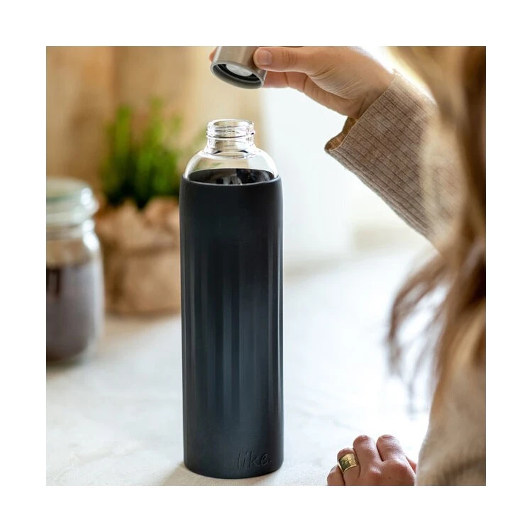 The To Go & To Stay bottle offers the perfect solution for drinks and liquid food such as soup. Silicone covered glass offers a slip resistant surface for your active lifestyle. Great for water or energy drinks on the go. 33.75 oz Capacity. Dishwasher safe.