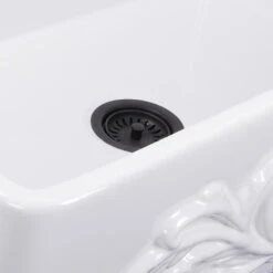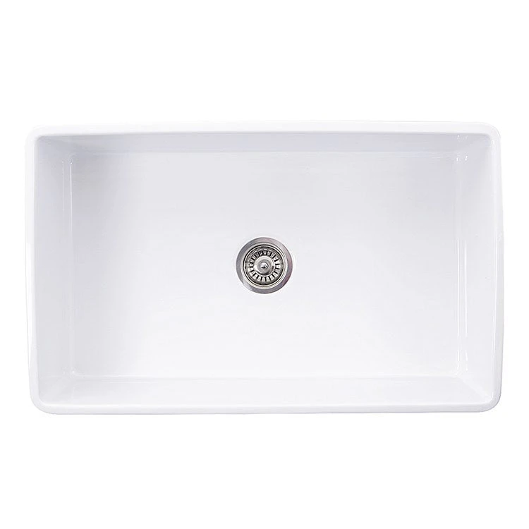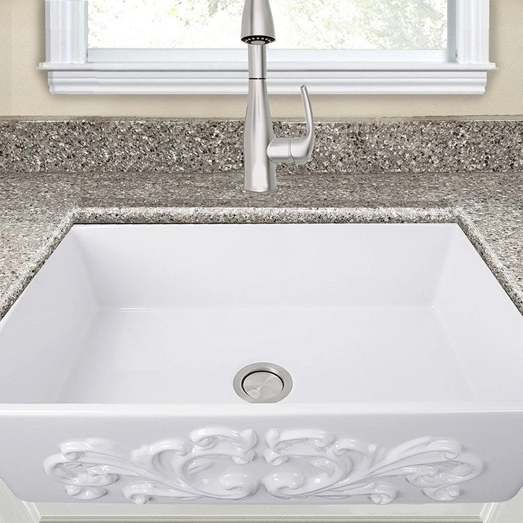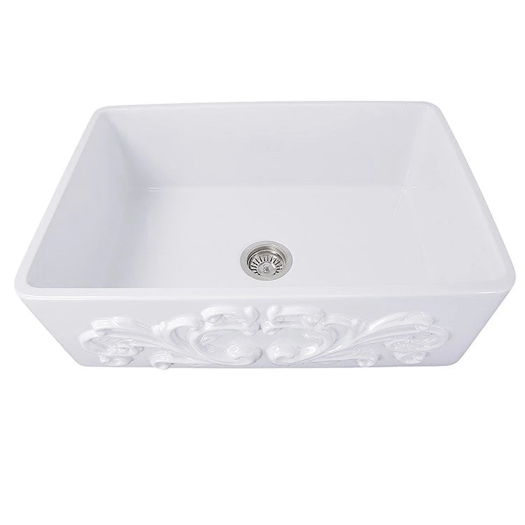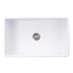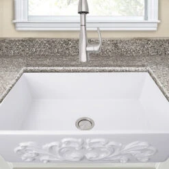 Nantucket Sinks 33″ farmhouse fireclay sink with vines apron design. Part of the Vineyard Collection, this sink has beautiful vine relief on its apron front. Set off your decor with its creative design for an unforgettably stylish kitchen! There are many benefits to fireclay. Its glazed surface inhibits bacterial growth more than stainless steel. It is eco-friendly requiring less cleansers. Made and hand finished in Italy, each sink is unique. Due to the firing process, dimensions are nominal and may vary to actual up to 0.5″. Custom cabinet or apron cabinet required. * A note about fireclay: small cracks will appear on the unglazed underside of the sink, these are cosmetic only and have no impact on the performance of the sink.